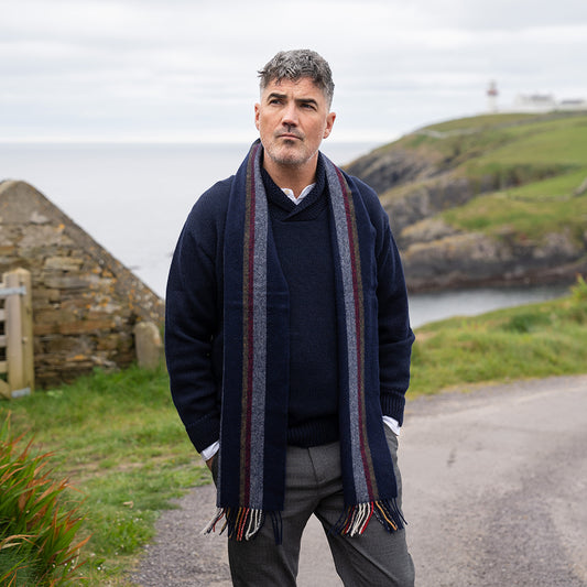 Lambswool Scarf from John Hanly - navy stripe