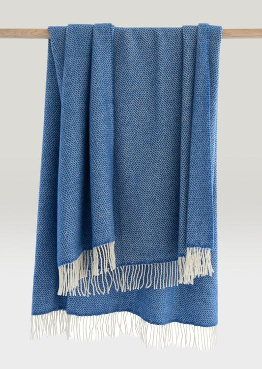 Merino Cashmere Herringbone Throw -Sea blues