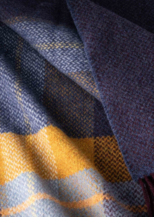 Merino Cashmere Herringbone Throw - Denim Mustard