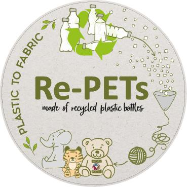 We stock their 'Re-PETs' collection of soft toys-these are made of 100% RPET (Recycled polyethylene terephthalate). RPET comes from plastic used for packaging such as water and soda bottles. The plastic is collected, sorted, cleaned and shredded into pellets, and melted and then spun into threads. The threads are being knitted or woven into fabric that will be used in making your new favorite plush toy.