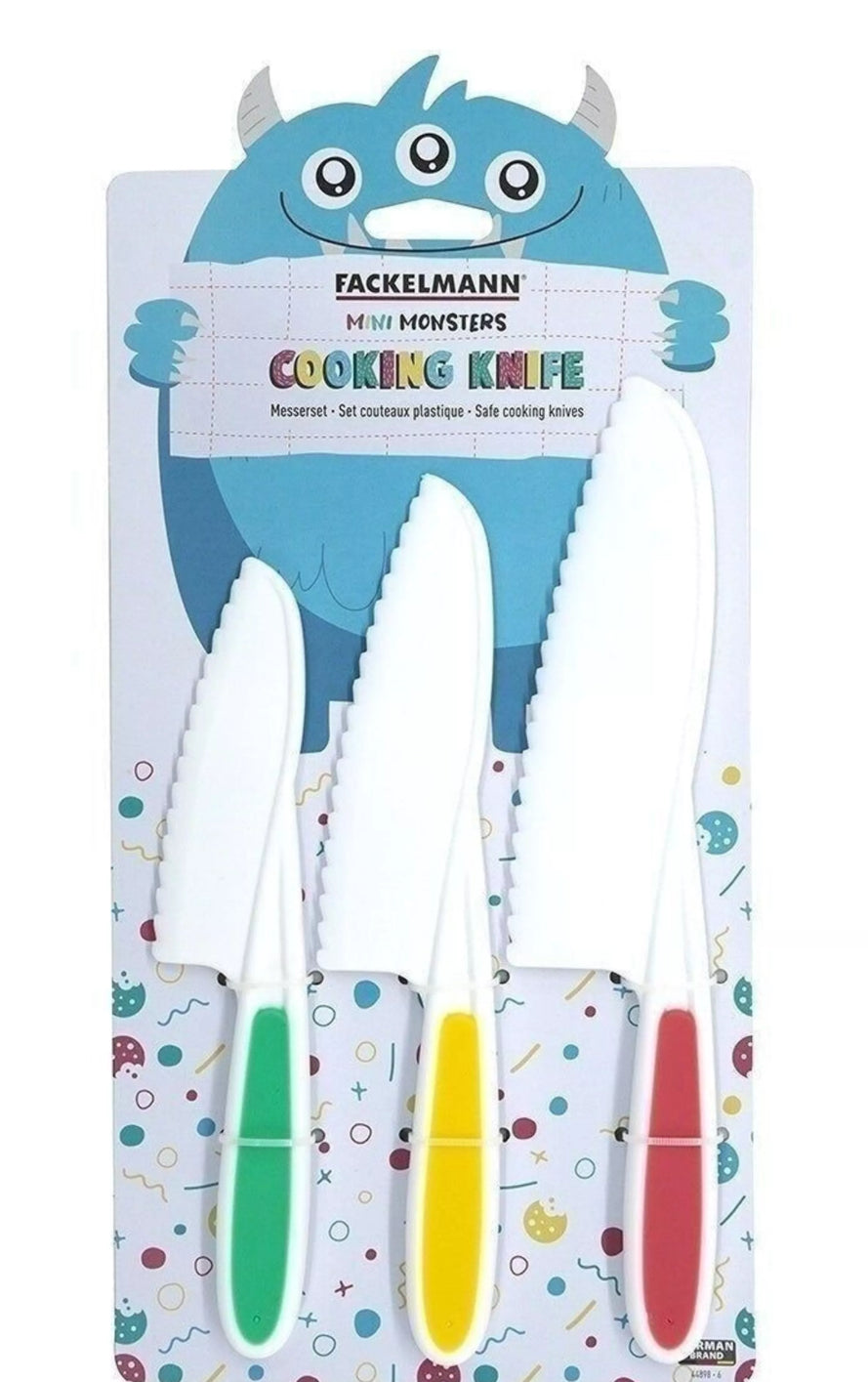 Fackelmann offers you this set of 3 knives from the Mini Monsters collection for children. For all children who are constantly asking for a helping hand in the kitchen, Fackelmann has developed this set of 3 knives especially for them. colorful and suitable for their little hands, your children or grandchildren will love cooking with you!