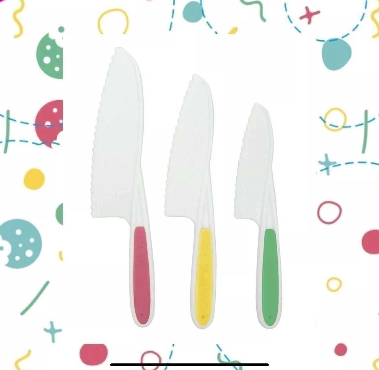 Contains a 22 cm, 24.6 cm, 27.5 cm kitchen knife for children