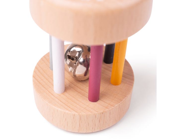 Babies can shake, rattle, and roll with this gorgeous wooden roll rattle from Bigjigs! This beautiful wooden rattle is painted with six different child-friendly colours and comes complete with a shiny bell. The bright shades help engage babies’ eyes and the rolling bell helps to develop hand/eye coordination.