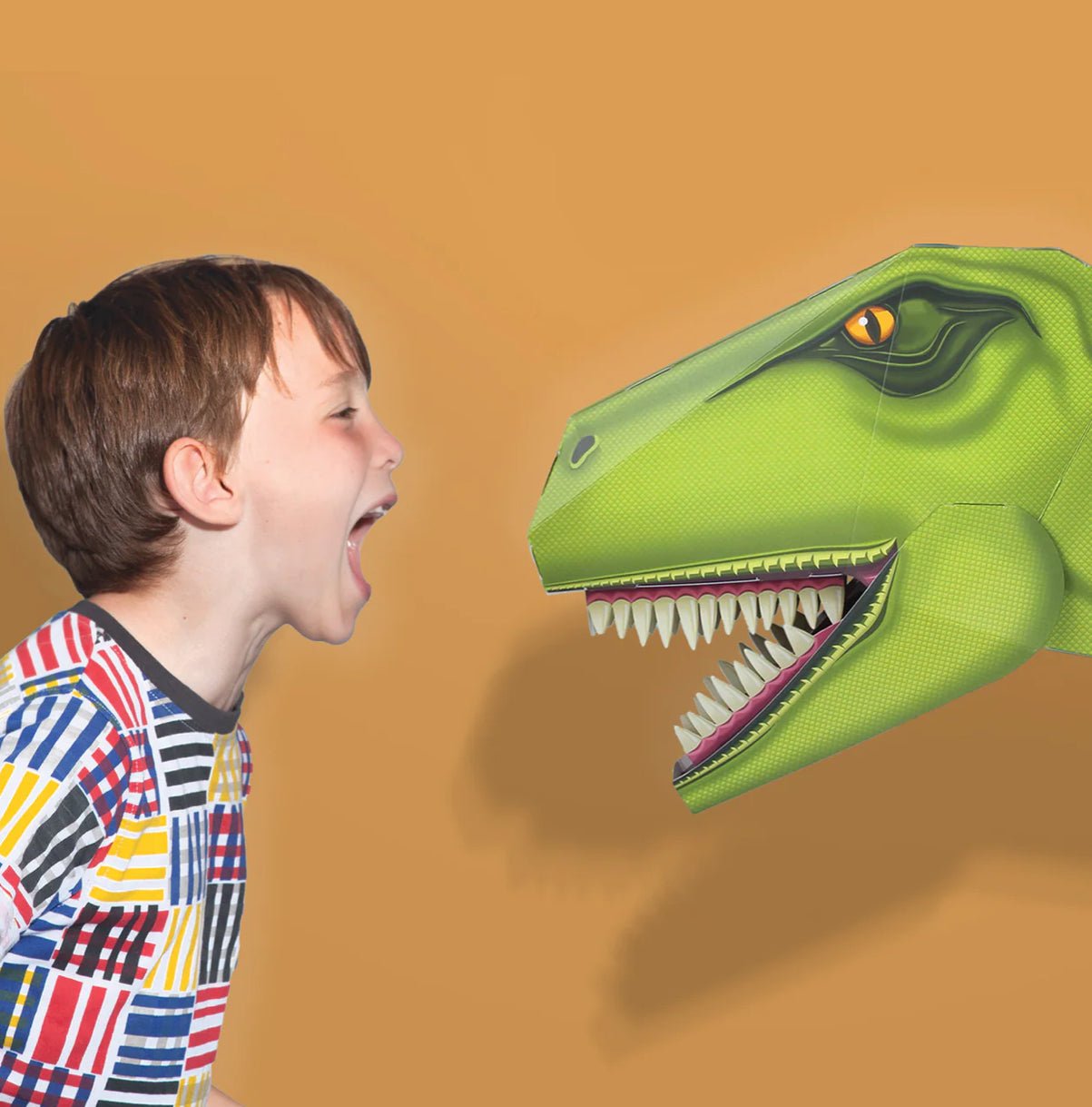 Create a terribly terrifying dinosaur head to hang up on your bedroom wall so it looks like a terrible T-Rex is crashing into your room!