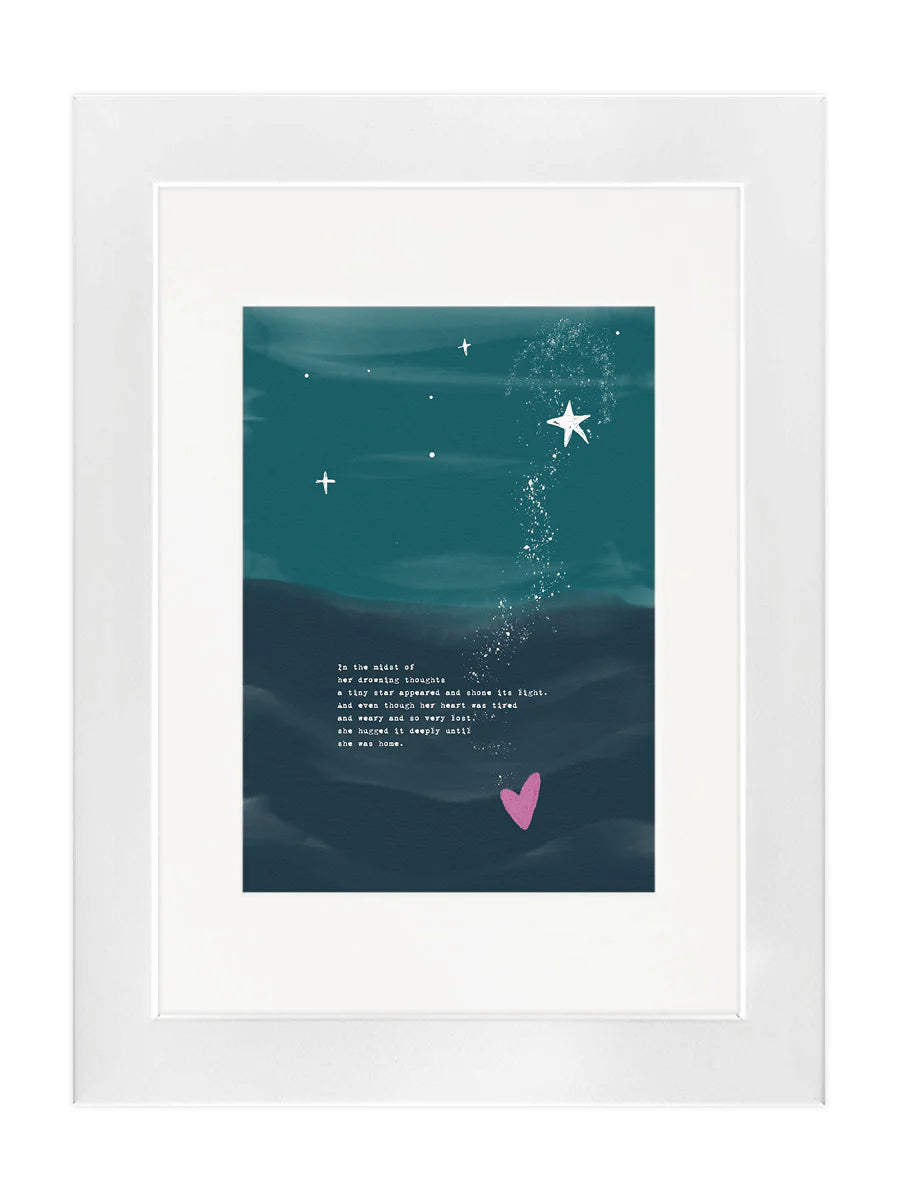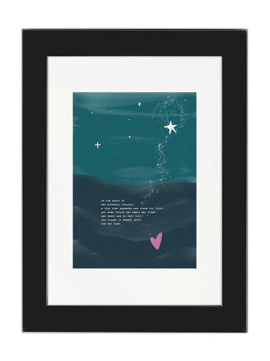 “ In the midst of her drowning thoughts a tiny star appeared and shone its light. And even though her heart was tired and weary and so very lost, she hugged it deeply until she was home.“