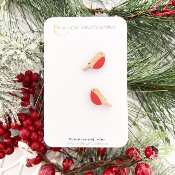 These ones are laser cut & made from sustainable bamboo. Hand painted in part & finished with a water based varnish. A lovely little pair of earrings & would make for a great gift for a bird / nature lover. Also a nice gift to give or receive at Christmas time.