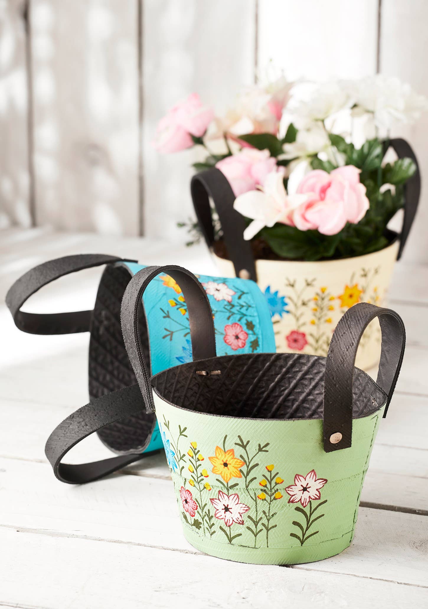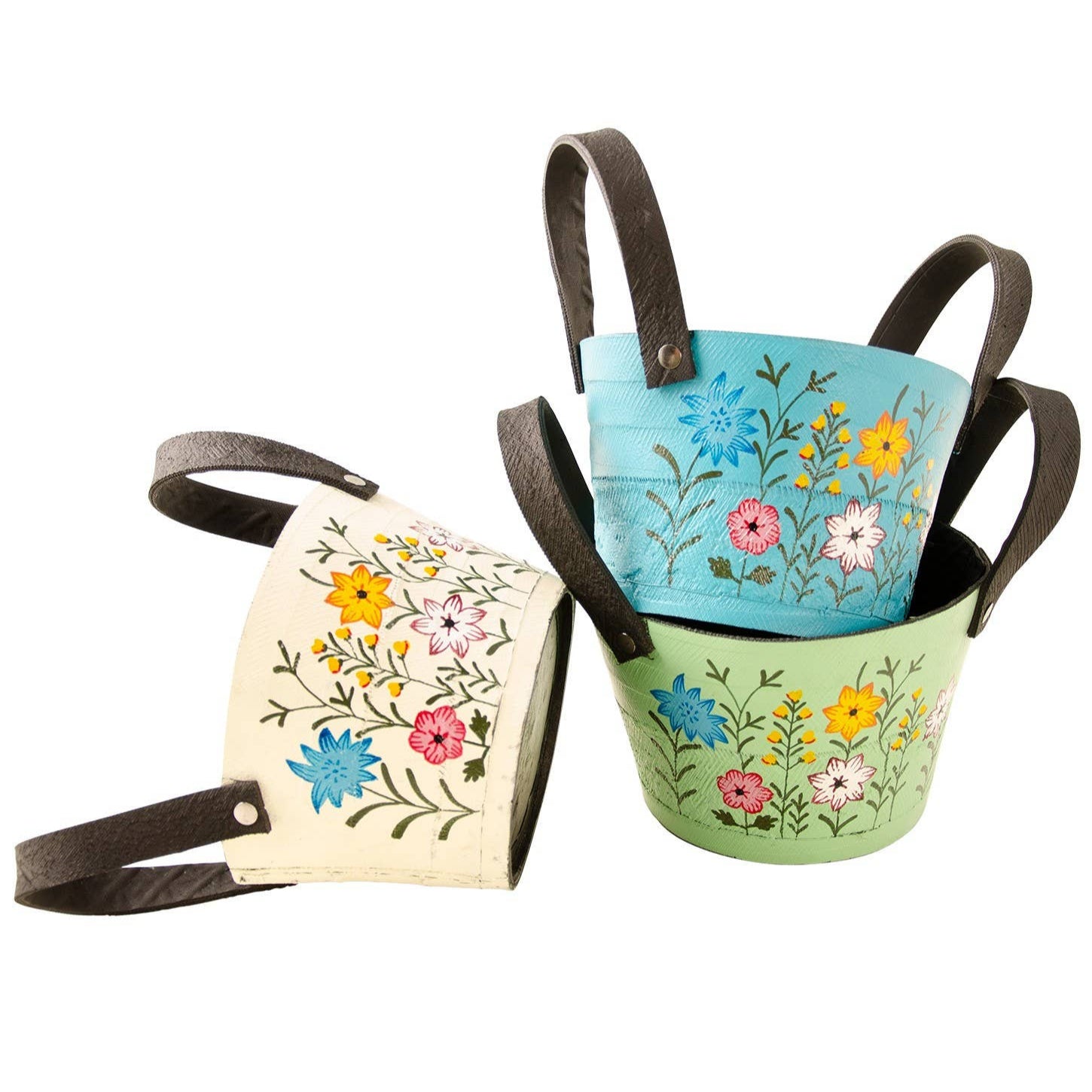 New to Namaste Fair Trade and part of a selection of products made from recycled tyres. The small floral rubber planter is unbreakable, easy to manoeuvre and wonderfully hand decorated in pretty flowers, beyond recognition. Practical garden ware that will last and help prevent damaging waste.