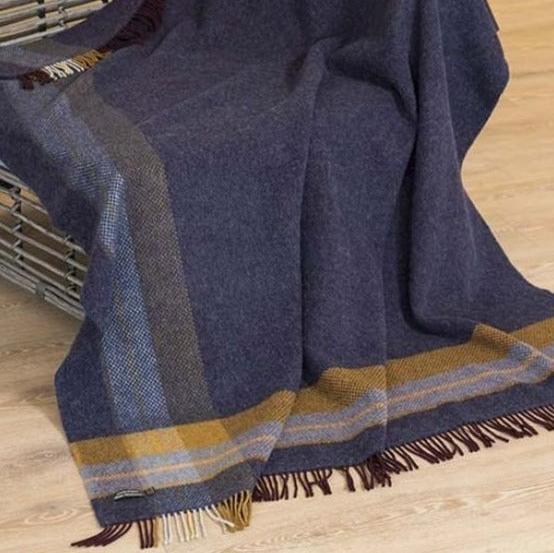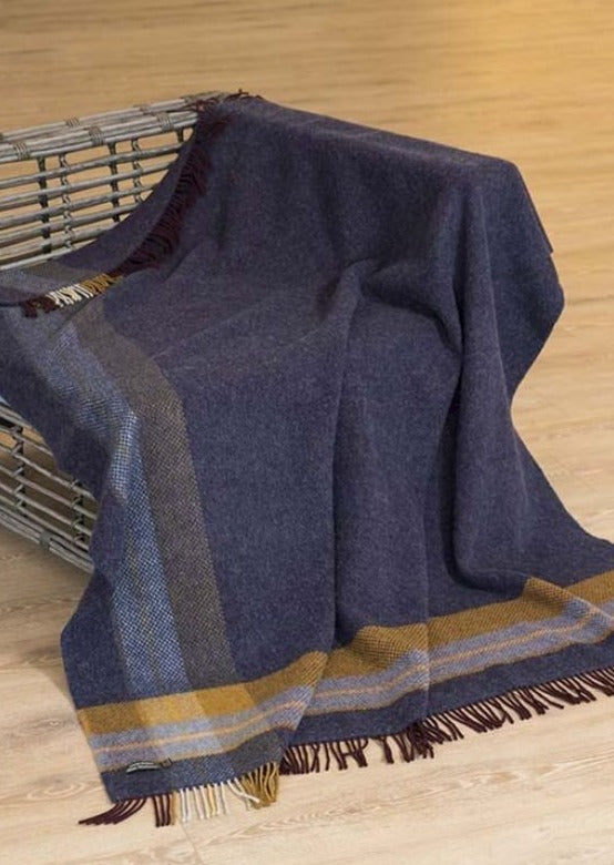 Merino Cashmere Herringbone Throw - Denim Mustard