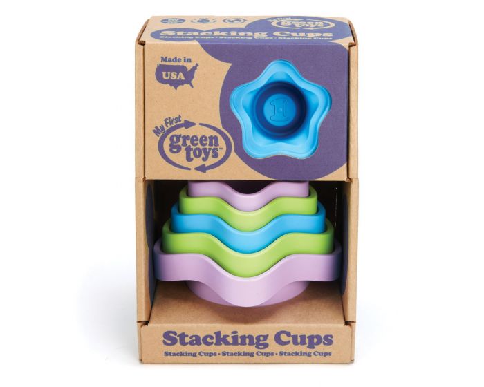 Six graduated cups, dozens of possibilities for bath and play time. Scoop and pour water, build towers by turning upside down, or just sort sizes to nest. The My First Green Toys Stacking Cups are colourful and fun and teach basic counting and maths concepts. Each cup is numbered on the bottom from 1 to 6 and is volumetrically accurate. Fill cups 1 and 2, for example, and it will equal the volume of cup 3. Perfect for home, classroom, outdoors, or the tub. Consists of 6 play pieces.