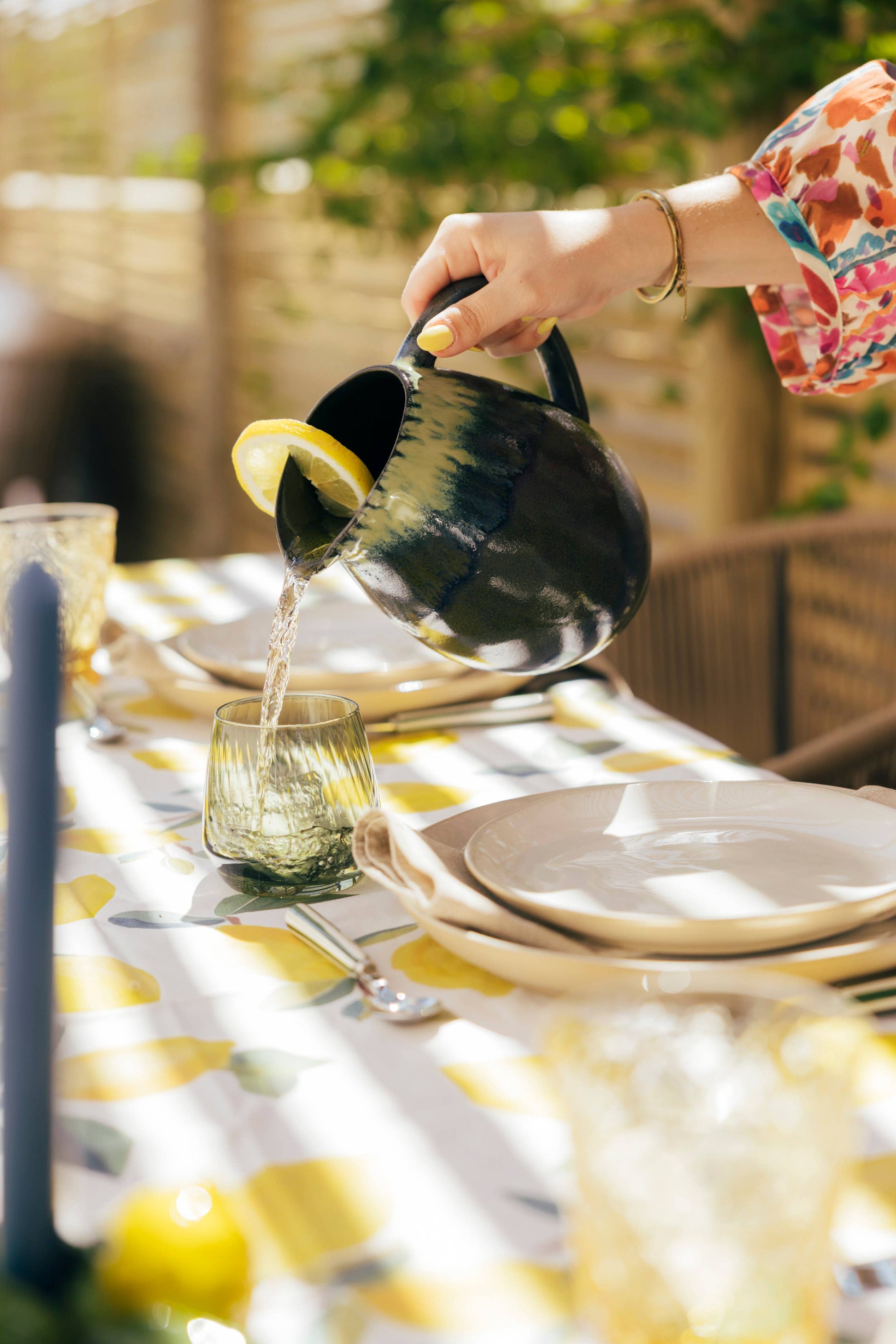 Carefully handcrafted in Portugal, this ceramic pitcher features exclusive, vibrant colors that add charm and character to any table. Whether used for serving or as a decorative accent, its organic shape and joyful tones make it a standout piece for both everyday meals and special gatherings. This article has a capacity of 1,76L.