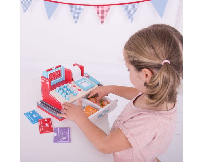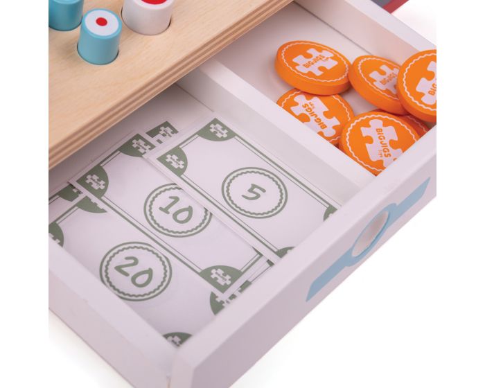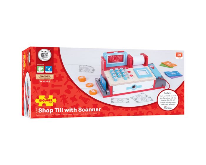 The Bigjigs Toys Toy Till is a great addition to any pretend shop. Keen sales assistants can scan the items using the scanner, offer different payment methods including credit card and cash, and even create a receipt for their customer!